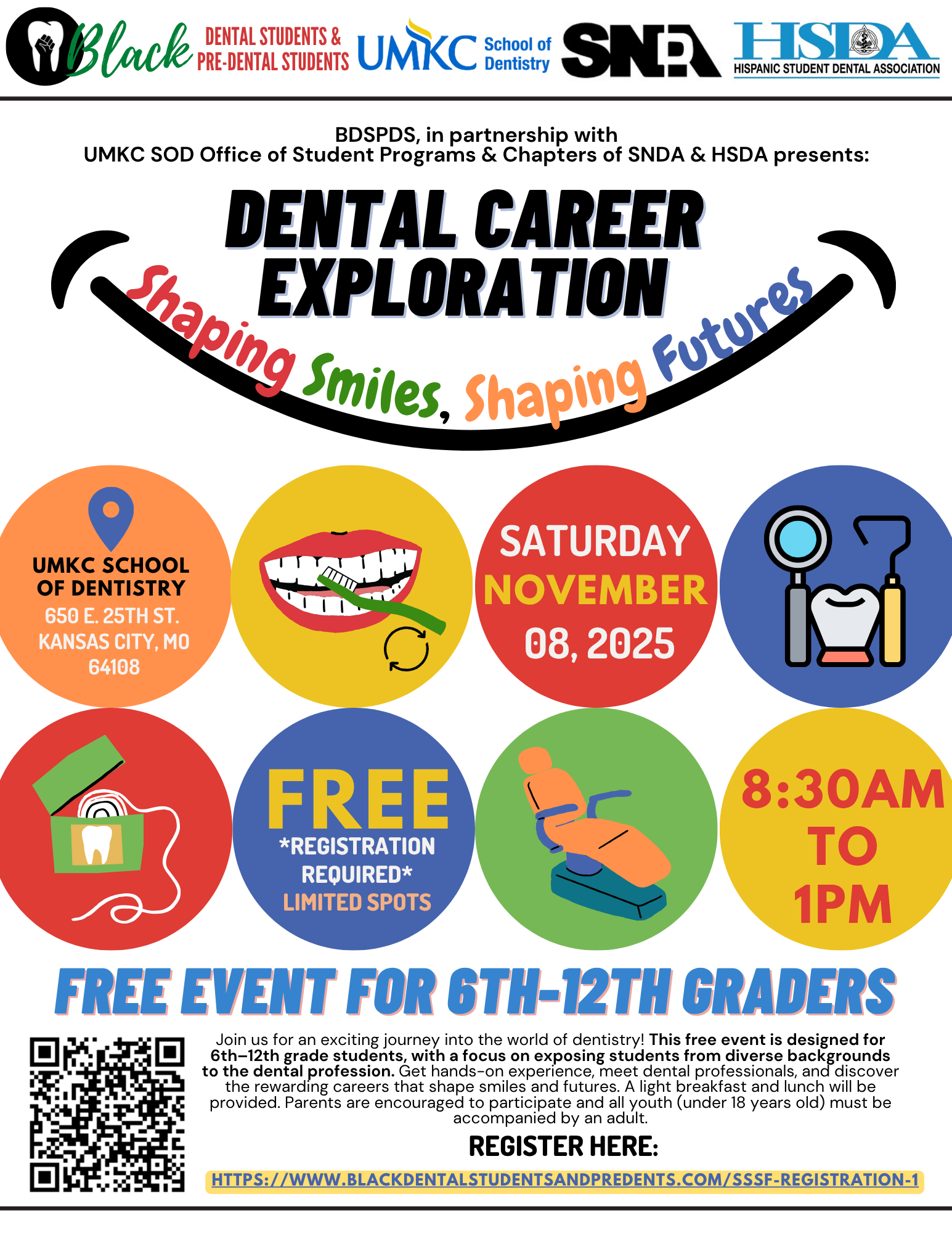 Black Dental Students & Pre-Dents in partnership with the University of Missouri Kansas City School of Dentistry’s Office of Student Programs and chapters of the Student National Dental Association and the Hispanic Student Dental Association presents